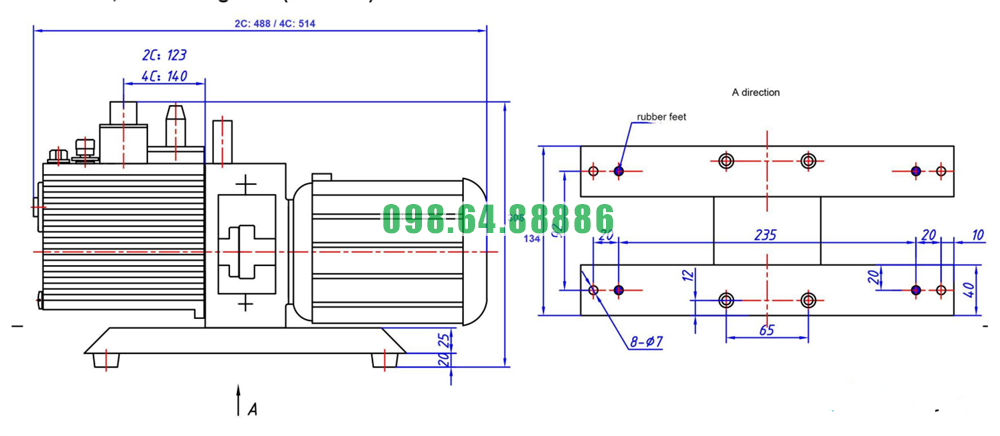Bơm chân không thô model 2XZ-2 lưu lượng 7.2 m³