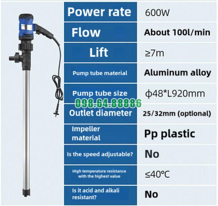 Máy bơm thùng phuy điện model JDT-L92-600W được thiết kế để làm việc trong môi trường công nghiệp có cường độ cao, tiếp xúc dầu, dung môi và nhiều loại hóa chất. Nhờ cấu tạo tối ưu và vật liệu chất lượng, thiết bị sở hữu độ bền vượt trội và tuổi thọ dài hơn nhiều dòng bơm thông thường.