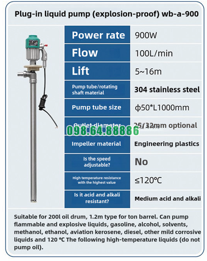Vai trò của cánh bơm nhựa kỹ thuật trong Máy bơm chất lỏng inox 304 chống cháy nổ WB-A-900