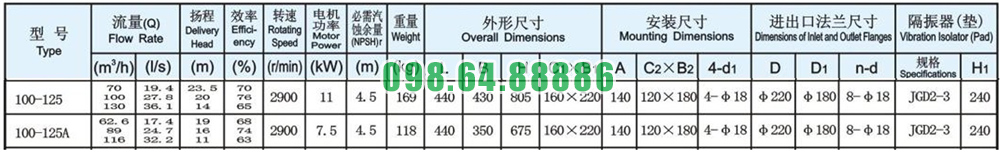 Máy bơm trục thẳng đứng, bơm lùa, bơm ly tâm trục đứng ISG100-125, IRG100-125 11kw, 100m3, 20m