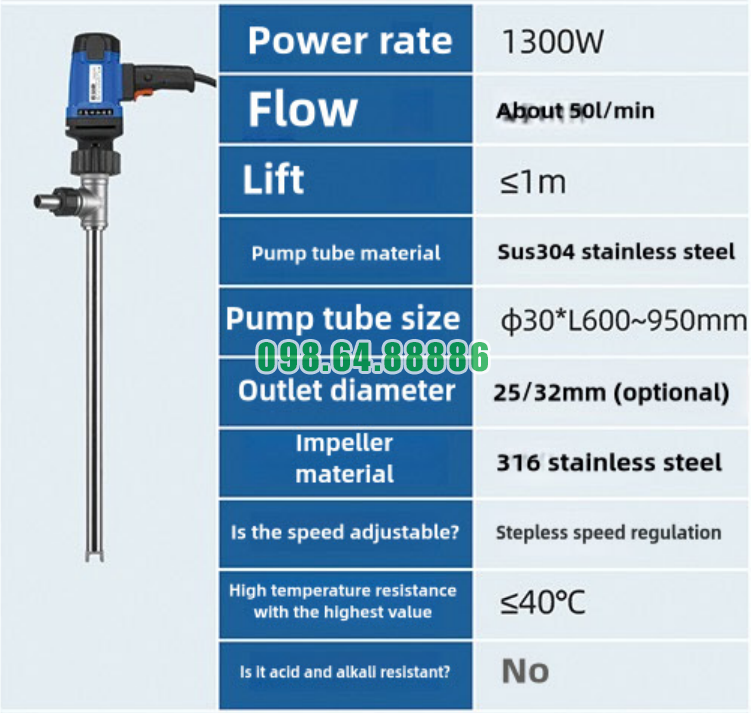 Bơm thùng phuy JDT-1300W-30 SUS304 sở hữu tính năng chống ăn mòn vượt trội