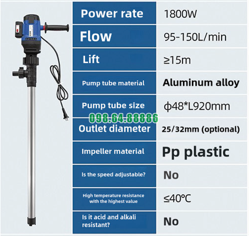 Một trong những điểm làm nên hiệu suất cao và sự ổn định của bơm điện thùng phuy cao cấp JDT-1800W-L92 chính là nguyên lý hút – đẩy nhịp nhàng. Cơ chế này giúp bơm tạo dòng chảy liên tục, đều đặn, hạn chế gián đoạn và nâng cao hiệu quả chiết rót trong các ứng dụng công nghiệp.