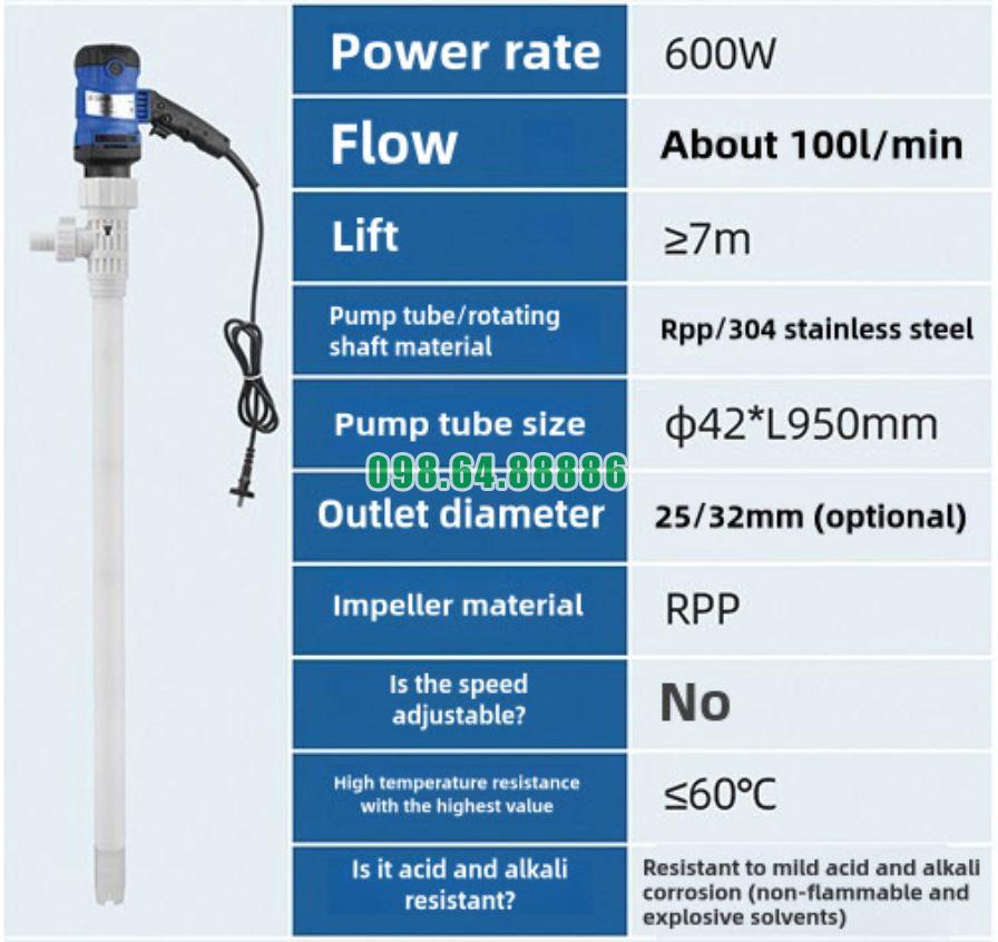Bơm điện hút dung dịch hóa chất JDT-600W-RPP