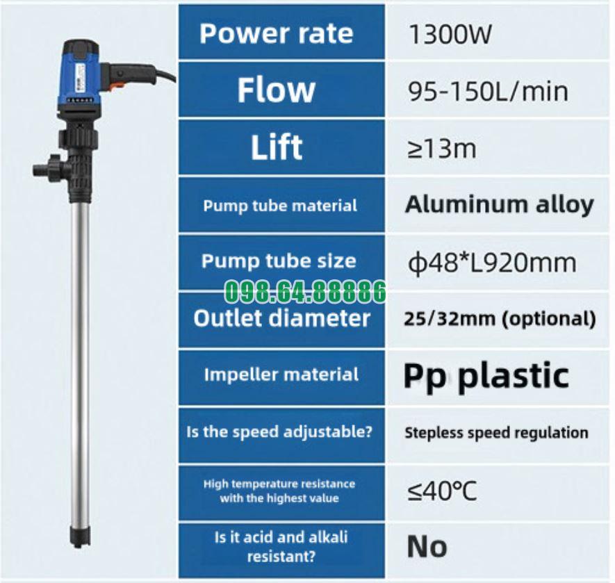 Thông số Bơm điện cầm tay bơm chất lỏng JDT-1300W-L92