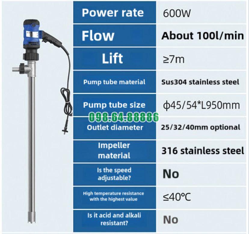 Bơm trục xoay thùng phuy model JDT-600W-304SUS