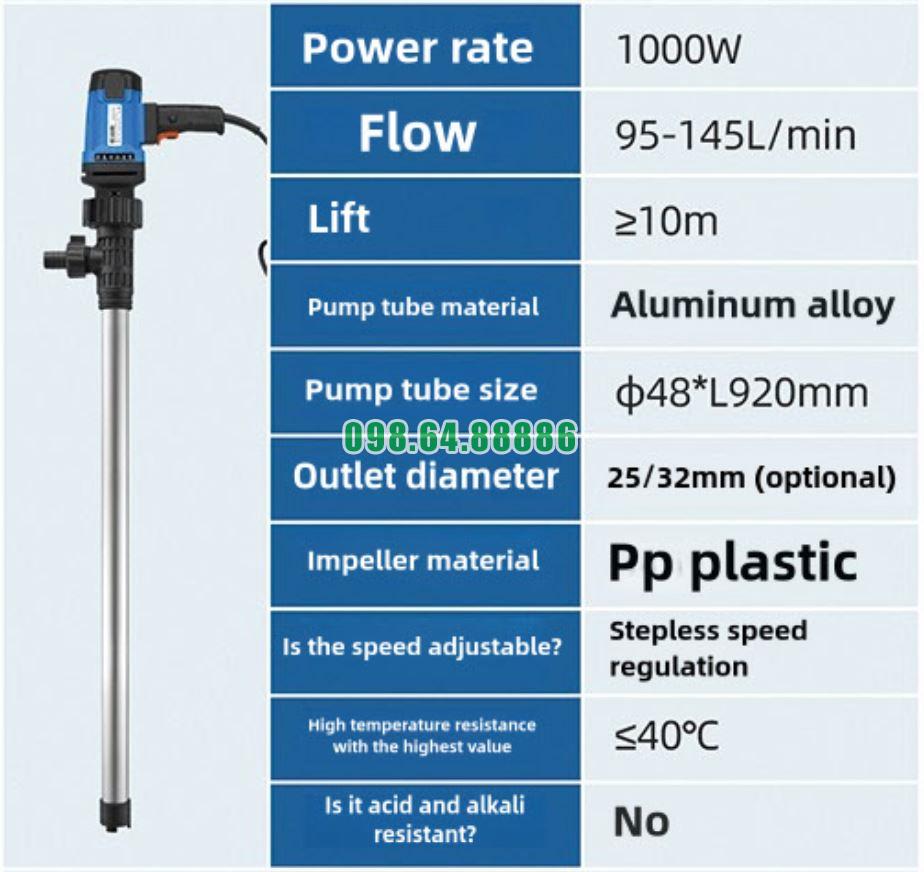 Máy bơm dầu thùng phuy 1000W model JDT-L92