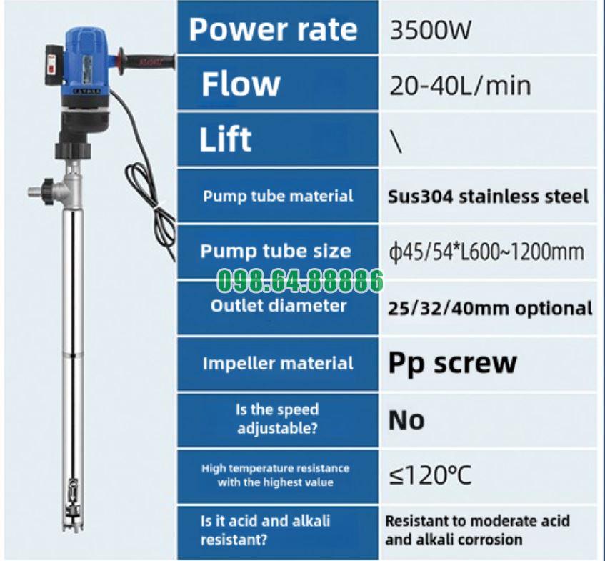 Máy bơm điện cầm tay hút thùng phuy JDT-3500W-LGG120 là giải pháp lý tưởng trong việc bơm rượu và cồn công nghiệp trong các cơ sở sản xuất và chế biến. Với công suất mạnh mẽ, khả năng làm việc hiệu quả với các chất lỏng dễ bay hơi và dễ cháy, thiết kế an toàn và dễ sử dụng, máy bơm này giúp tối ưu hóa quy trình sản xuất, tiết kiệm thời gian, và đảm bảo an toàn trong suốt quá trình vận hành.