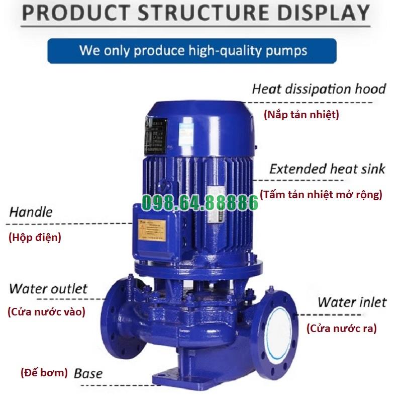 Máy bơm ly tâm trục đứng inline, bơm ly tâm, inline ISG65-315, IRG65-315 30kw, 25m3, 125m